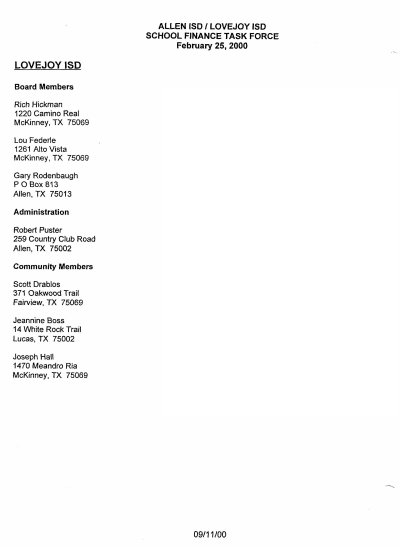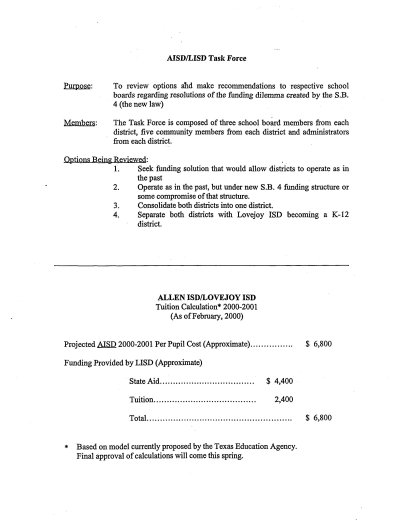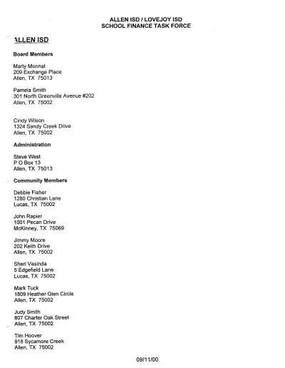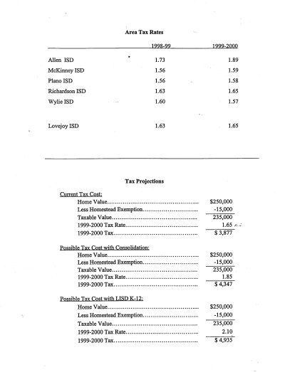 Cover Page Purpose Page Options Page Area Tax Rates Page Finance Task Force Members
